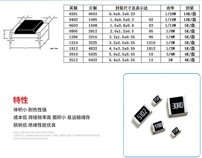 貼片電阻特性: